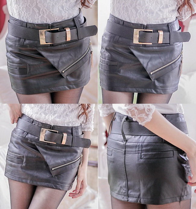 Leather Zipper Embellished Skirt